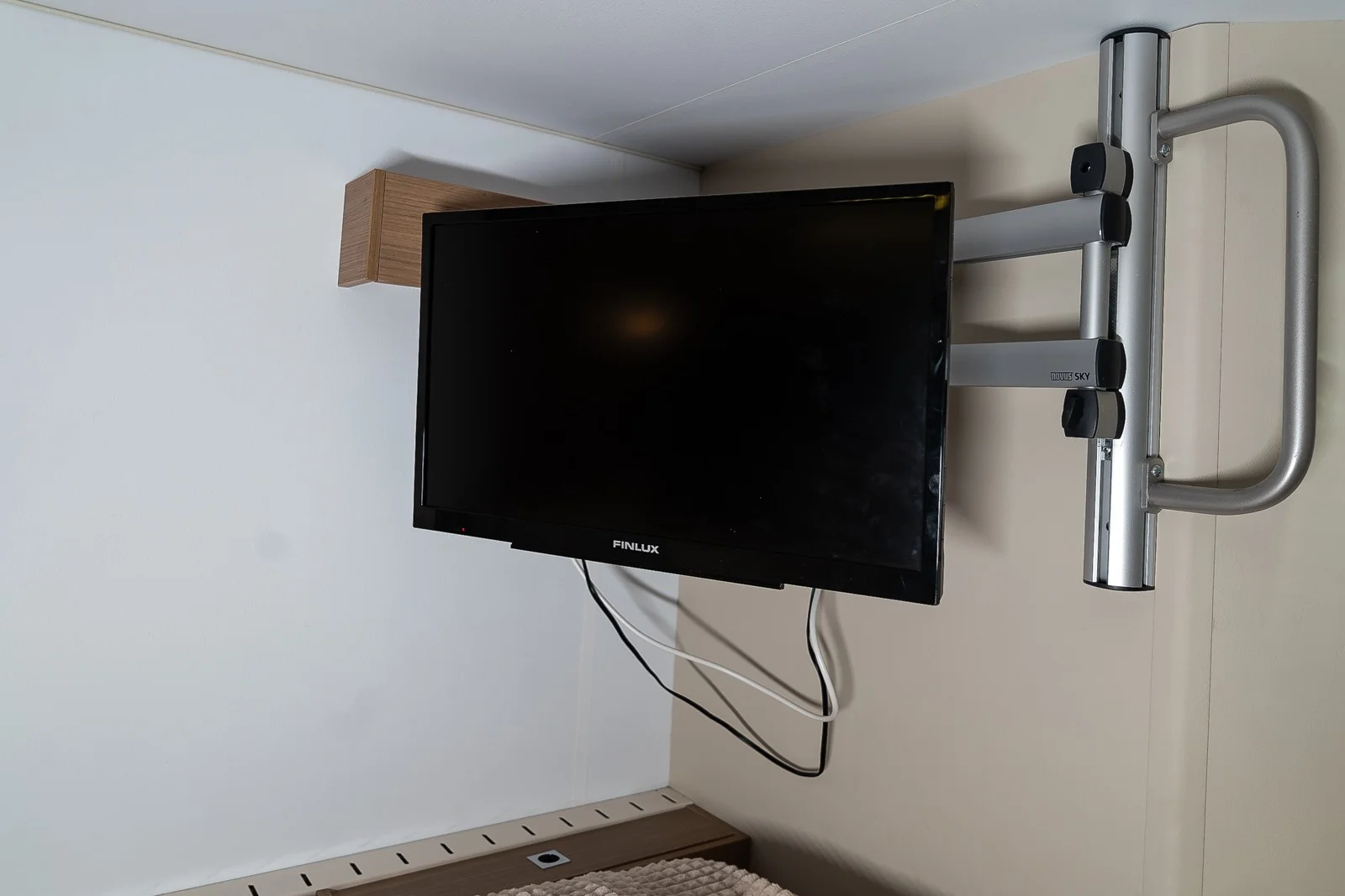-TV avec support pour pouvoir regarder la télévision depuis les chaises devant ou dans le lit à l’arrière si vous le souhaitez