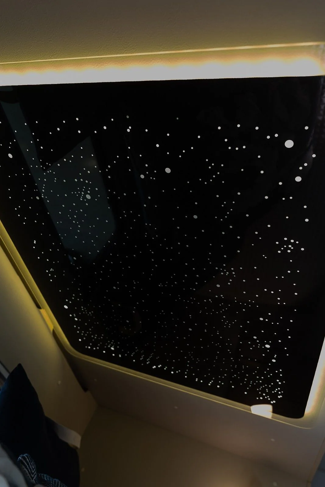 Le fait que le camping-car dispose d’un Slide Out signifie qu’il fait 599 cm en conduisant, puis suivez les tarifs des voitures de tourisme sur les ferries, etc. Vous pouvez également sortir l’arrière pour obtenir 670 cm lorsque vous vous êtes garé pour la soirée. Vous disposez alors soit de deux lits longitudinaux de chaque côté à l’arrière, soit d’un grand lit double si vous préférez.