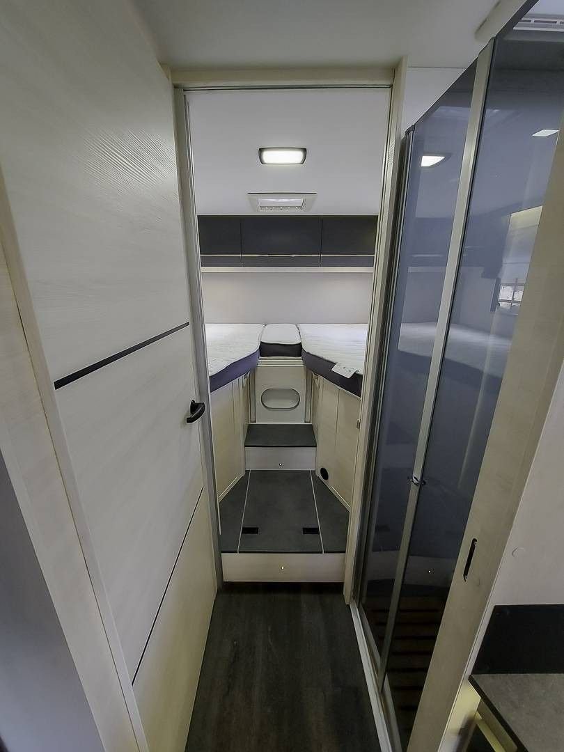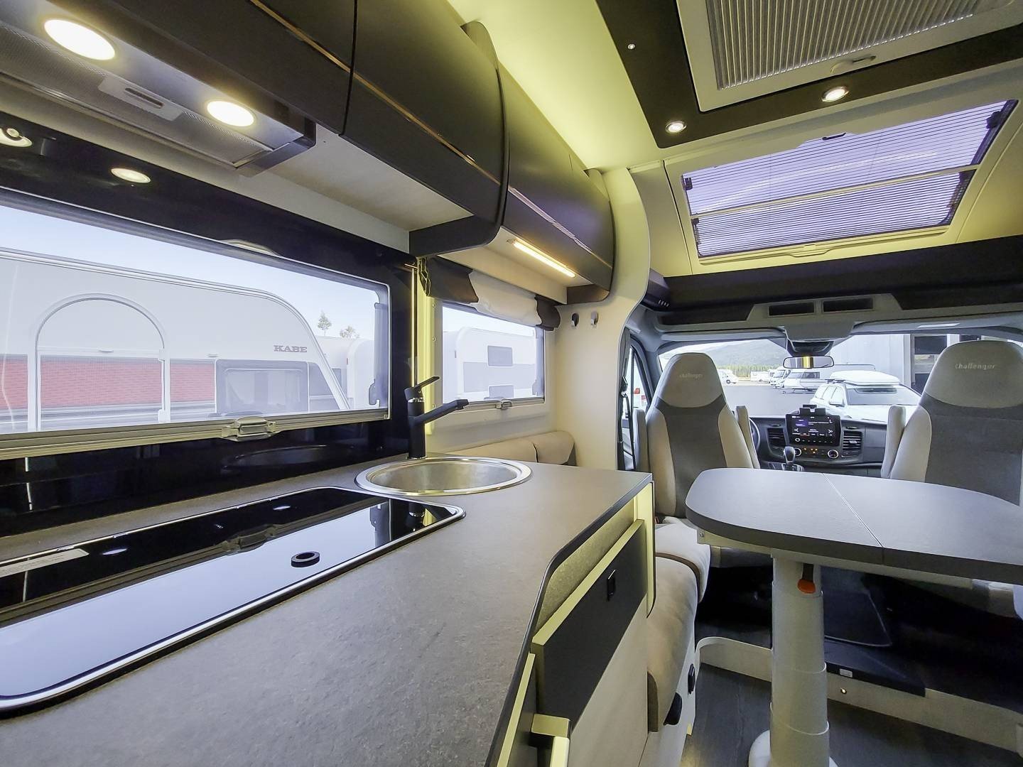 Challenger 337 avec deux lits simples et une solution face à face dans le salon. Construit sur un châssis Ford et équipé d’une transmission automatique et d’un moteur de 140 ch. Système de chauffage Webasto et chauffage au sol électrique. Voiture bien équipée telle que a un panneau solaire, des pneus hiver, un attelage, un auvent, une caméra de recul, un ventilateur de cuisine, une porte anti-moustique et une radio DAB+. WC et salle de douche séparés. Décoration moderne et possibilité de faire un couchage supplémentaire dans le salon.