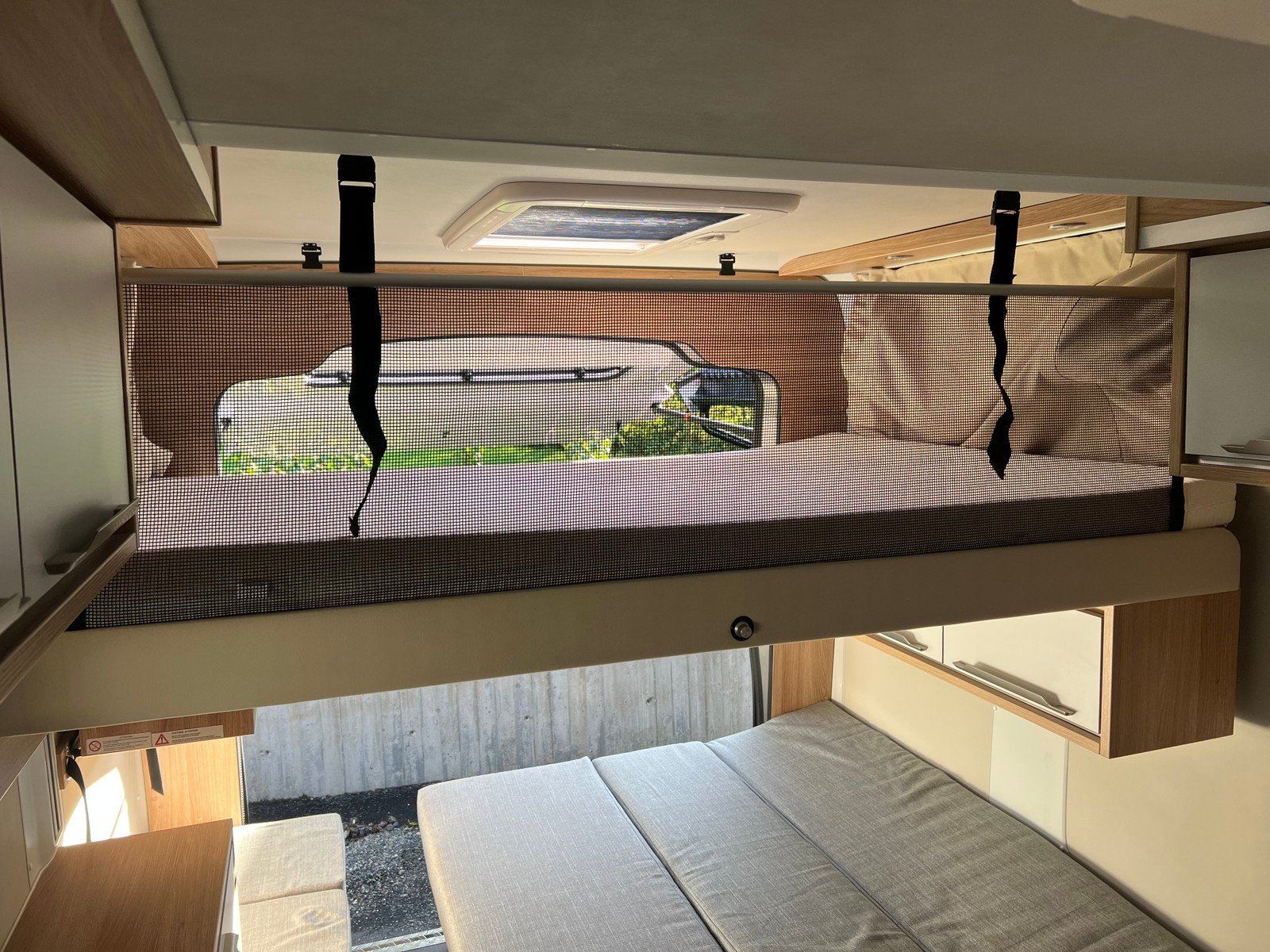 Voiture robuste avec essieu tandem et châssis léger, toit en PRV renforcé contre la grêle. Panneaux en aluminium lisses sur tous les côtés de la voiture. Meubles en chêne Nagano et tissu obsidienne dans le canapé. Zone de chargement en matériau CPL durable, la table pliante peut également être utilisée à l’extérieur.