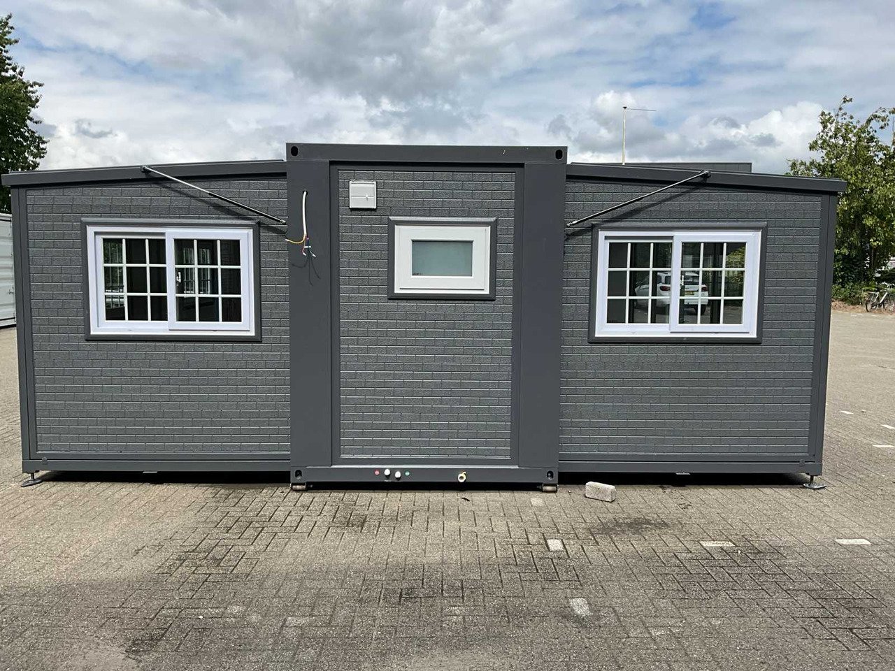 Equipé d’un toit et de murs isolés, d’une cuisine avec placards en dessous et au-dessus, d’une salle de bain avec grande douche, d’un lavabo avec armoire de toilette, de toilettes, d’un sol en vinyle à chevrons, d’un ventilateur, de 2 chambres, chaque chambre avec prises et éclairage, de cadres en plastique avec double vitrage, de toutes les portes avec serrures, entièrement verrouillables, de tous les raccordements pour l’assainissement, l’alimentation en eau et le drainage et de l’électricité prête à être raccordée, Extérieur avec panneaux en plastique aspect bois, taille de transport 5850x2200x 2550 mm