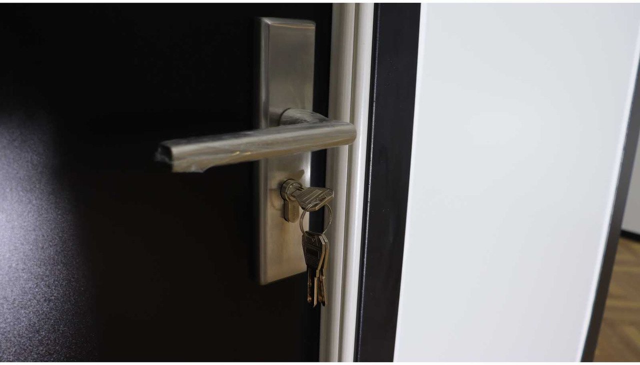 Equipé de murs et d’un toit isolés ; salle de bain avec toilette et douche ; lavabo avec armoire de toilette et accessoires de toilette ; sol en vinyle ; système de ventilation (connexion 230V) ; cadres en plastique avec double vitrage ; canal de drainage ; plateau ; l’eau, l’électricité et le drainage peuvent être facilement connectés est préparé ; verrouillable avec clé et cylindre à bouton ; dimensions pliées 5860x2110x2550 mm.