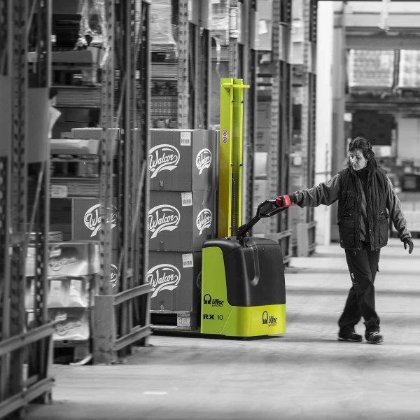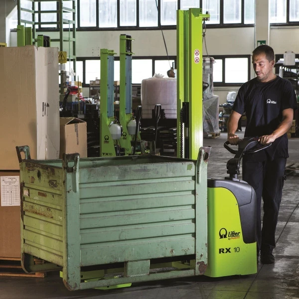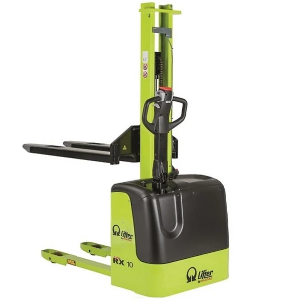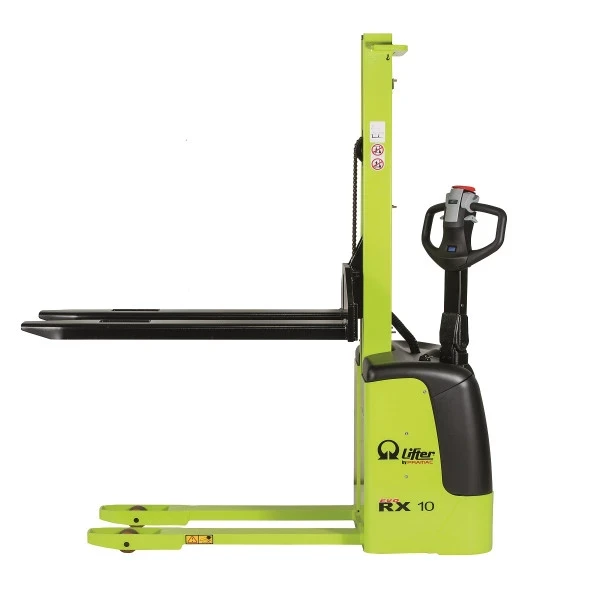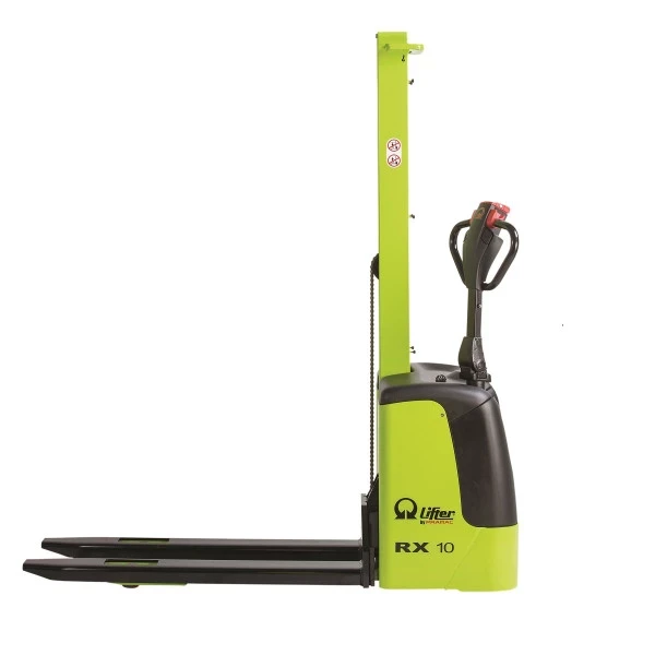 Ce gerbeur électrique, levée et déplacement électrique, est le plus compact de la gamme. Il est équipé d’un mât central entièrement électrique adapté pour des charges de 1000 kg.