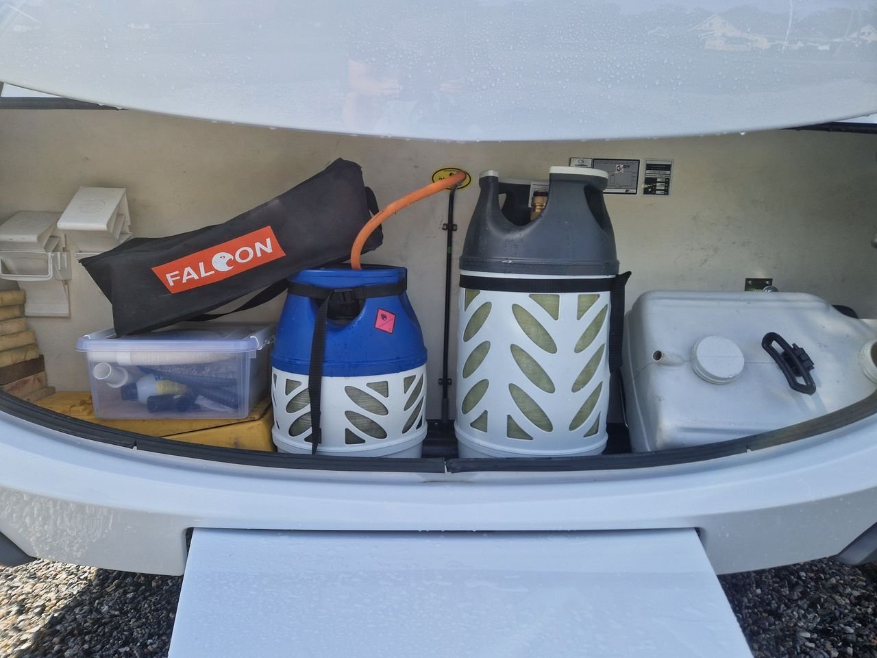 La caravane est équipée d’une batterie de loisirs, ce qui permet de faire du camping libre. Elle est également équipée d’un détecteur de gaz et d’un détecteur de fumée.