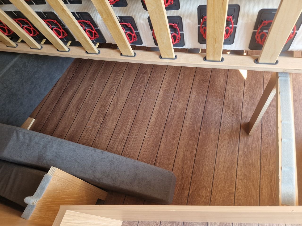 La caravane dispose de 2 lits superposés et d’un lit double avec un espace de rangement en dessous. En outre, le salon peut être converti en 2 lits supplémentaires.