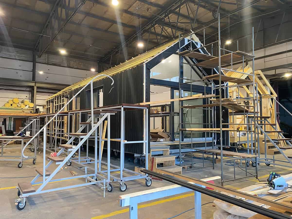 La maison modèle F3 est disponible en trois tailles : version de base 1 ( 13,10 m x 4,2 m ), version 2 ( 13,5 m x 4,2 m) et version étendue 3 ( 14,1 m x 4,2 m). Chaque version (1, 2 et 3) présente un agencement fonctionnel légèrement différent ( voir ci-dessous pour la F3). La structure de la maison se compose de deux modules, chacun doté de son propre plancher inférieur en acier, peint ou galvanisé selon la spécification choisie. Les autres éléments structurels (plancher, murs et toiture) sont réalisés avec une ossature en bois certifié C24. (…)