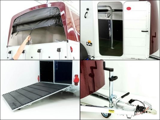 Toujours frais devant : grâce à la fenêtre avant réglable dans cinq directions, il n’y a pas d’air épais dans le XANTHOS AERO . Un déflecteur d’air installé de série et une trappe de toit pouvant être installée ultérieurement sur demande assurent également un apport d’air frais sans courant d’air. Mais le confort n’est pas la seule priorité chez Humbaur : la cloison verrouillable, les parois latérales en aluminium anodisé et le profilé de cadre galvanisé à chaud font du XANTHOS AERO une remorque pour chevaux stable et robuste pour les plus hautes exigences.