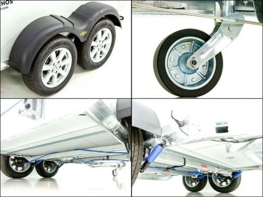 Avec ce van pour chevaux XANTHOS AERO de couleur noire, le constructeur allemand Humbaur présente un chef-d’œuvre en termes d’esthétique et de confort de conduite. La proue aérodynamique de la remorque réduit la résistance de l’air pendant la conduite. Le résultat : moins de bruit de vent, une consommation de carburant réduite, plus d’espace dans la sellerie. En combinaison avec le châssis de sécurité Humbaur pour une tenue de route stable et les pneus adaptés à 100 km/h, le cheval et le cavalier se sentent également à l’aise avec ce van pour chevaux.