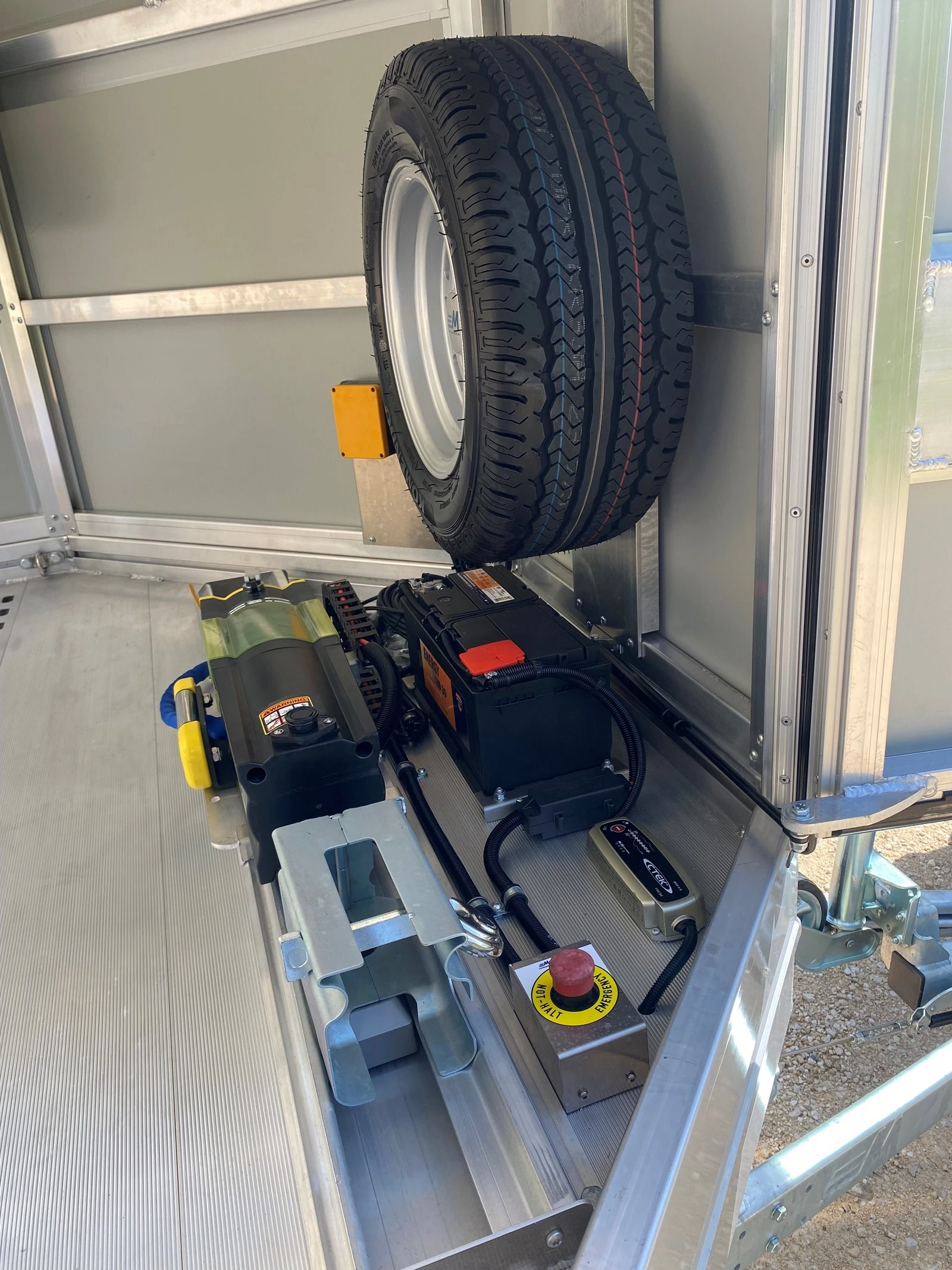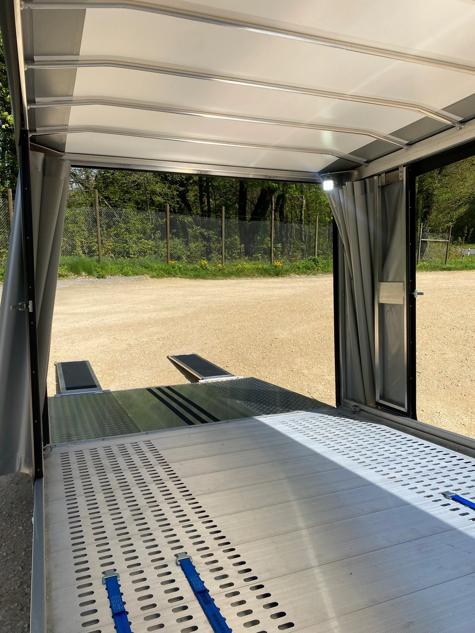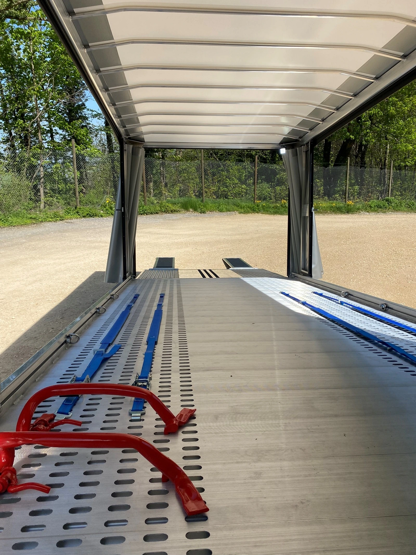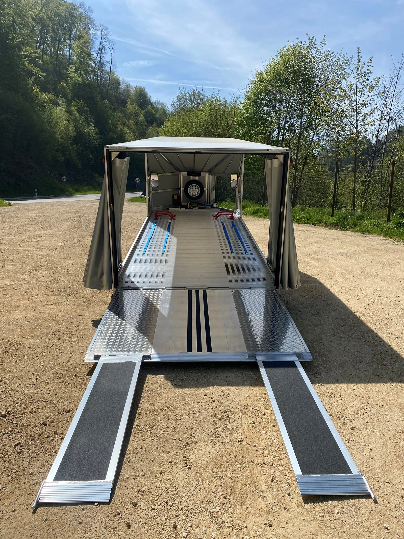 – Les rampes d’accès peuvent être dépliées pour un angle d’approche plat (pour le chargement de voitures de sport très plates, par exemple la Porsche GT3 RS)