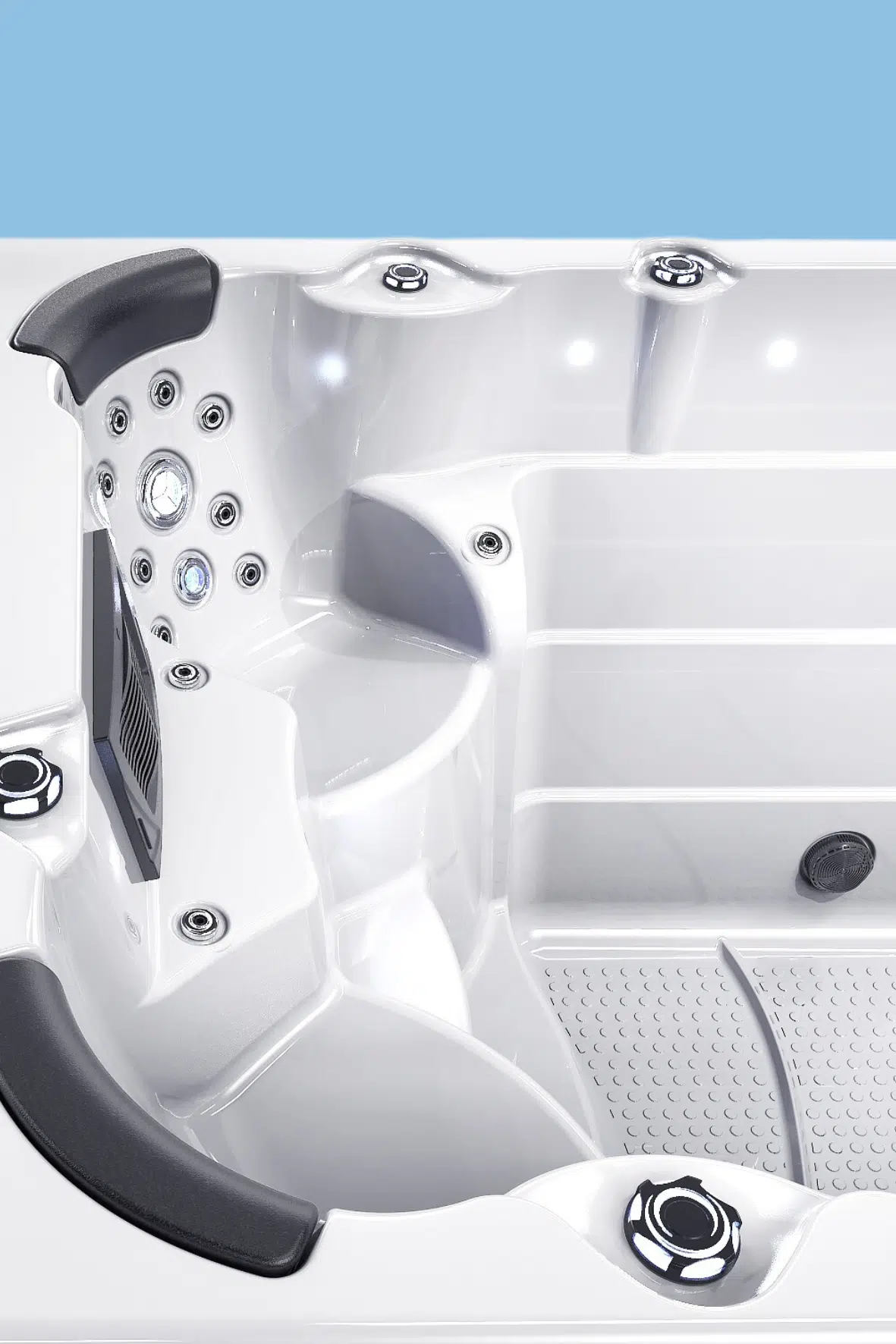 Spa de Nage Sanocea : Dualité Parfaite entre Effort et Détente Une immersion dans un espace nautique où l’eau fraîche stimulante rencontre la chaleur apaisante. Redécouvrez le plaisir de nager, puis de vous prélasser sous les jets thérapeutiques.
